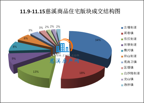 慈溪商品住宅(含别墅)各版块成交情况中,城区版块(浒山街道、古塘街道、白沙路街道、宗汉街道、坎墩街道)共成交72套,成交均价10787.87元/㎡。排名前三版块:古塘街道备案38套,占上周商品住宅成交总量34%;周巷镇备案20套,占上周商品住宅成交总量的18%;宗汉街道备案15套,占上周商品住宅成交总量13%。
