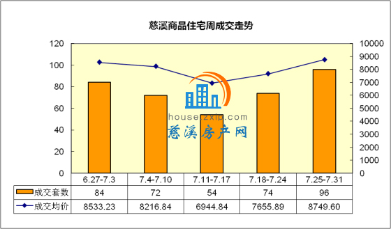 上周商品住宅(含别墅)成交96套,成交均价8749.60元/㎡,成交面积14650方。环比上上周成交量上涨29.73%,成交均价上涨14.29%,成交面积上涨28.94%。