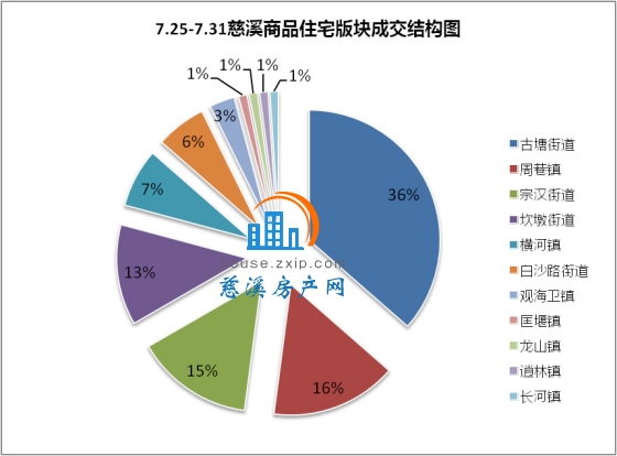 慈溪商品住宅(含别墅)各版块成交情况中,城区版块(浒山街道、古塘街道、白沙路街道、宗汉街道、坎墩街道)共成交67套,成交均价9507.66元/㎡。排名前三版块:古塘街道备案35套,占上周商品住宅成交总量的36%;周巷镇备案15套,占上周商品住宅成交总量的16%;宗汉街道备案14套,占上周商品住宅成交总量的15%。