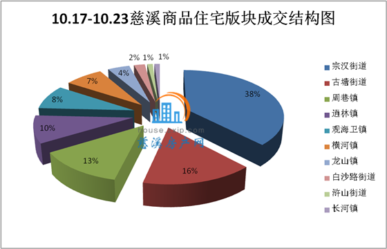 慈溪商品住宅(含别墅)各版块成交情况中,城区版块(浒山街道、古塘街道、白沙路街道、宗汉街道、坎墩街道)共成交54套,成交均价10402.16元/㎡。排名前三版块宗汉街道备案36套,占上周商品住宅成交总量的38%;古塘街道备案15套,占上周商品住宅成交总量的16%;周巷镇备案12套,占上周商品住宅成交总量的13%