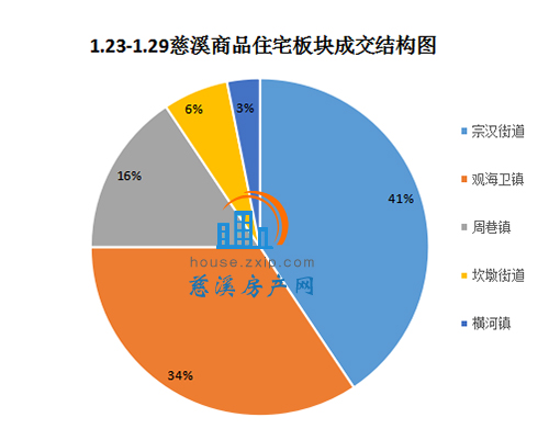 慈溪商品住宅(含别墅)各版块成交情况中,城区版块(浒山街道、古塘街道、白沙路街道、宗汉街道、坎墩街道)共成交15套,成交均价8641.43元/㎡。排名前三版块宗汉街道备案13套,占上周商品住宅成交总量的41%;观海卫镇备案11套,占上周商品住宅成交总量的34%;周巷镇备案5套,占上周商品住宅成交总量的16%。