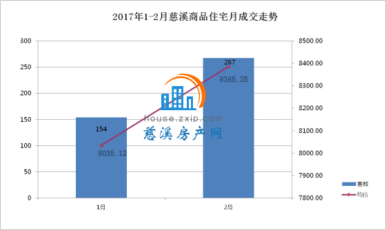 2月慈溪商品住宅共成交267套,其中高层248套,成交均价7633.75元/㎡;别墅19套,成交均价12596.88元/㎡。