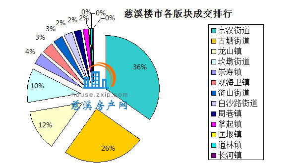 慈溪各板块各类房源成交情况中,宗汉街道85套,占36%;古塘街道61套,占26%;龙山镇30套,占12%。