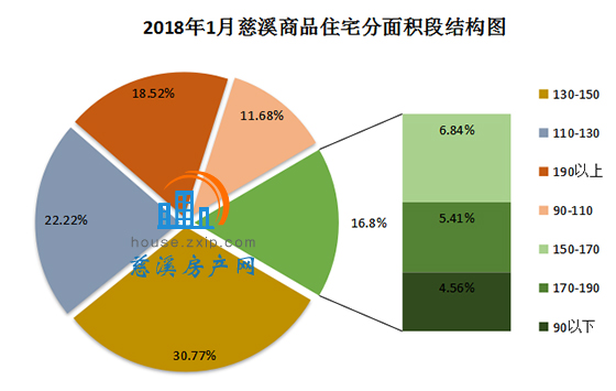 1月慈溪商品住宅按面积段成交中,130㎡-150㎡面积段产品成交108套,占总成交套数的31%,销量排名第一;110㎡-130㎡面积段产品成交78套,占总成交套数的22%,销量排名第二;190㎡以上面积段产品成交65套,占总成交套数的19%,销量排名第三。