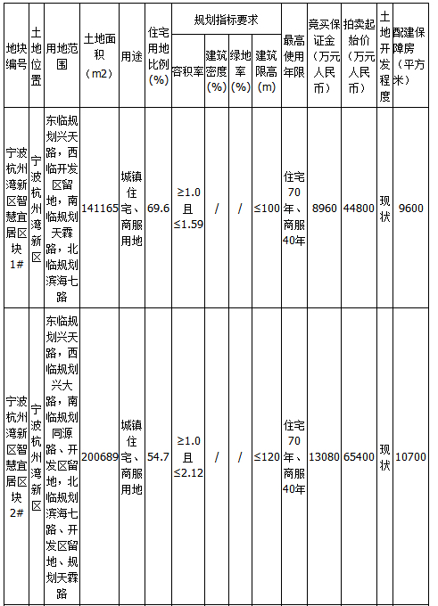 一、出让地块的位置、出让地块的规划指标、土地用途、出让年限、起始价总价及竞买保证金等详见附表。