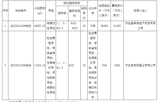 宗汉两宗地块拍卖出让结果
