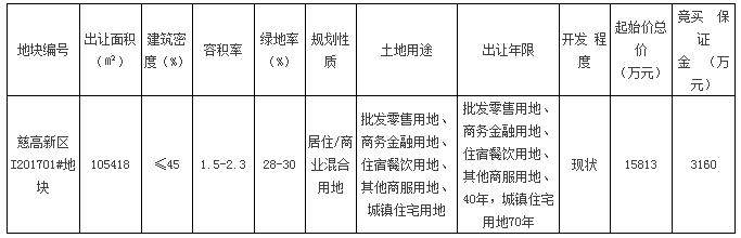 慈高新区地块使用权拍卖出让公告