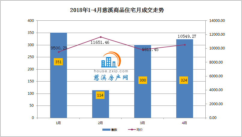 4月慈溪商品住宅共成交324套,其中高层287套,成交均价10399.63元/㎡;别墅37套,成交均价10956.41元/㎡。