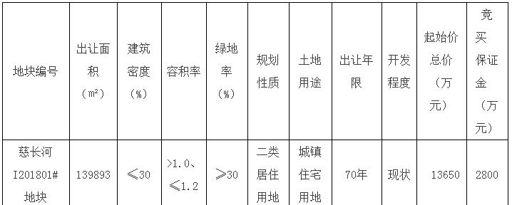 二、出让地块的规划指标、土地用途、出让年限、起始价总价及竞买保证金等如下: