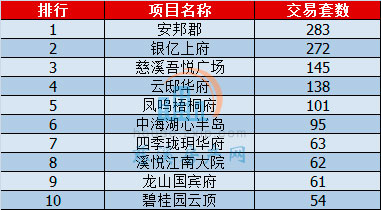 从成交排行榜上看,位于浒山街道的悦华府以100套的成交量夺得3月份慈溪商品住宅交易套排行的冠军宝座,领跑慈溪楼市,而湖心半岛花苑以94套的成交量居于亚军位置。紧接着是横河镇的凤鸣梧桐府,以79套住宅成交量跻身前三甲。