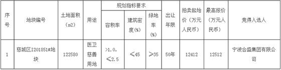 慈城区I201851#地块竞价结果