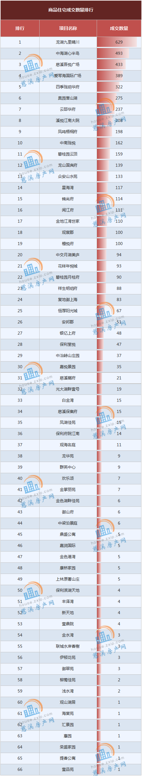 从成交排行榜上看,位于龙山镇的龙湖九里晴川以629套的成交量成功夺得2019商品住宅交易套排行的冠军桂冠,领跑慈溪楼市。紧接其后的则是位于明月湖板块的湖心半岛花苑,以493套的成交量居亚军位置。最后是悦华府以433套的成交量跻身前三甲,与龙湖九里晴川、湖心半岛花苑牢牢盘踞慈溪上半年商品住宅成交数量三甲的位置。