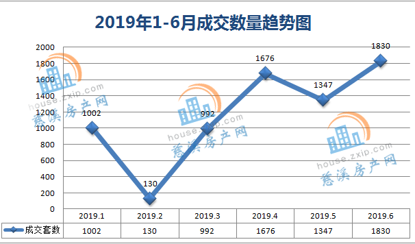 从趋势图来看,慈溪楼市2019年1-6月成交数量总体上是逐渐上升的。