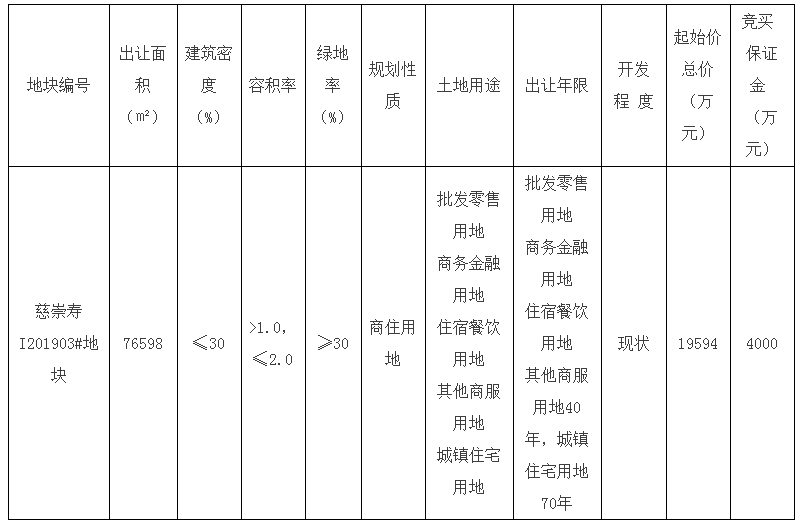 慈崇寿I201903#地块拍卖出让公告