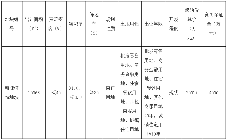 因此我们首先来看看新城河7#地块的规划条件: