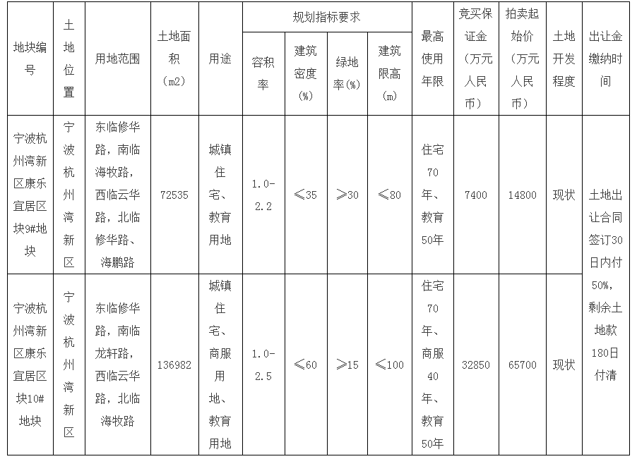 一、出让地块的位置、出让地块的规划指标、土地用途、出让年限、起始价总价及竞买保证金等详见附表。