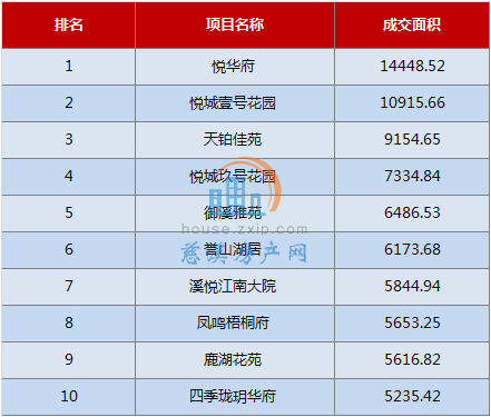 从成交排行榜上看,位于浒山街道的悦华府以93套的成交量夺得9月份慈溪商品住宅交易套数排行的冠军宝座,领跑慈溪楼市,而宗汉街道的天铂佳苑以72套的成交量居于亚军位置。紧接着是观海卫镇的誉山湖居,以52套住宅成交量跻身前三甲。