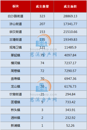 从成交区域上来看,白沙路街道以月成交323套居于榜首,浒山街道以203的成交量位居第二,观海卫镇则以153的成交量排名第三。