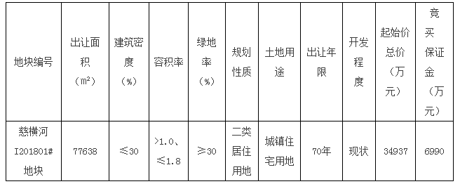 慈横河I201801#地块拍卖出让公告