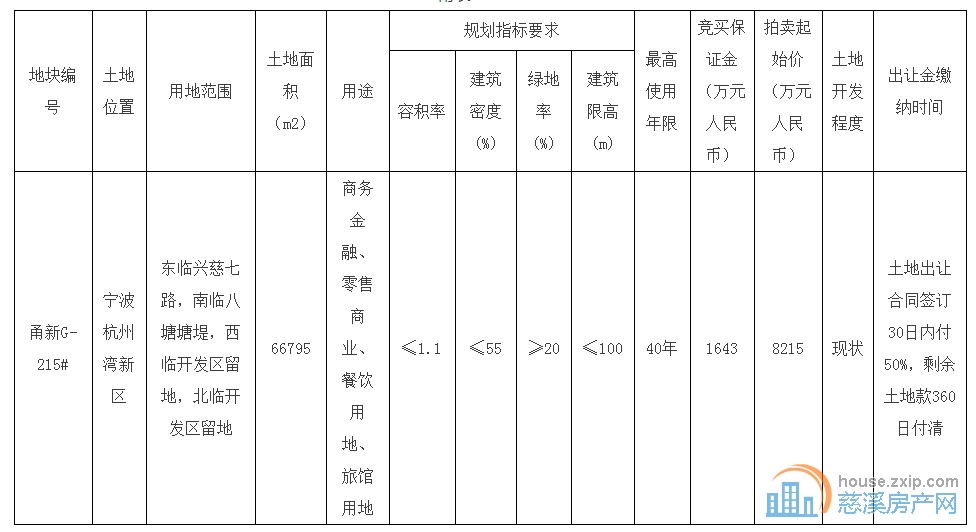 五、本次国有建设用地使用权拍卖出让事宜详见拍卖出让须知等文件,可登录浙江省土地使用权网上交易系统浏览或下载。