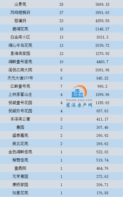 2020年6月慈溪商品房成交数据