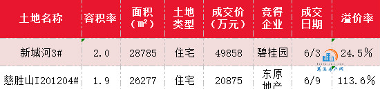 慈溪住宅土拍市场具体信息如下表: