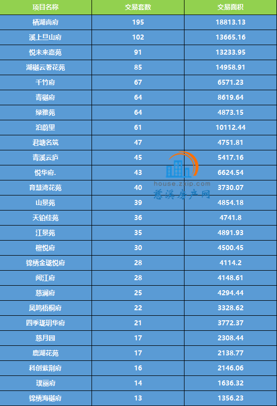 从成交排行榜上看,栖湖尚府以195套的成交量摘得9月份慈溪商品住宅交易套数排行的桂冠,领跑慈溪楼市,而溪上旦山府以102套的成交量夺得成交排行第二宝座的。紧接着是悦未来嘉苑,以91套住宅成交量跻身前三甲。