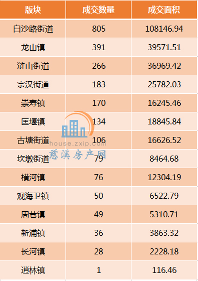 从成交区域上来看,城区(宗汉、古塘、白沙路、浒山、坎墩街道)10月共计网签1439套,乡镇共计网签935套。
