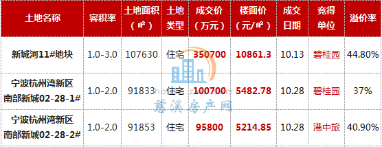土拍方面,10月慈溪住宅土拍市场火热,共出让3宗地块,具体信息如下表: