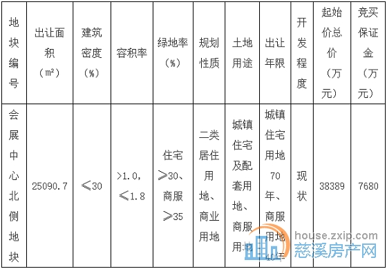 会展中心北侧地块出让设定上限价格,上限价格为57389万元。在上限价格内按照价高者得原则确定竞得入选人;当竞买报价达到上限价格时,转入在上限价格的基础上竞报住宅用房(人才安居专用房、保障性住房或拆迁安置房等政策性住房)程序,并按投报面积最高者得原则确定竞得入选人。