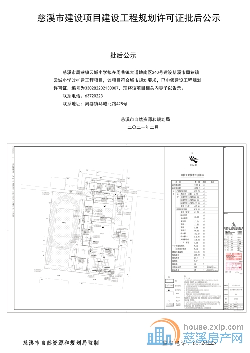 慈溪市周巷镇云城小学扩建项目规划批后公示