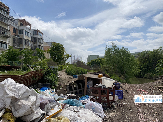 地块原先为海卫驾校所在地,部分铺设水泥,内部有房屋,桥墩,较多的石块,北面有一个封闭的小河塘,杂草也较多。废弃物基本堆积在地块北侧。