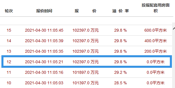 新潮塘4#地块于上午11点04分正式开始竞拍,出乎意料的是,参与竞拍的房企在开始便开始激烈的竞争,只在一分钟后,到第十二轮时就已达到了此次竞拍的封顶价,继而开始竞拍投报面积。