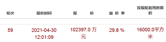 因参加竞拍的房企早有准备,在一小时不到的时间里,就已于第59轮的12点01分时便结束了竞拍,最终新潮塘4#地块被宁波梅山美的房地产发展有限公司以18961万元+配套房16000㎡的总价所竞得。