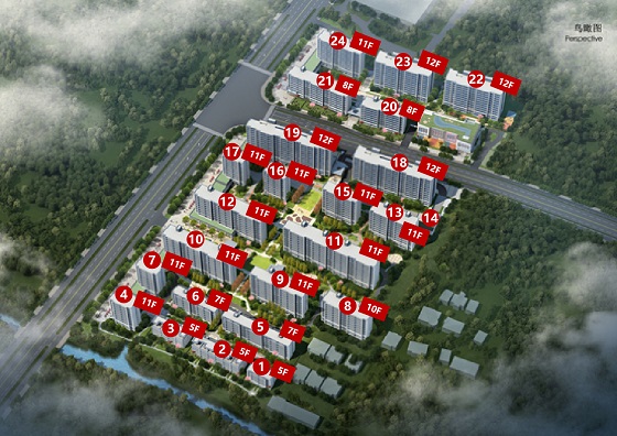 产品涵盖2幢建面约175-260㎡4+1层滨水叠墅、17幢建面约120-169㎡7-11层花园洋房,4幢建面约96-120㎡12层瞰景洋房。物业为佳源物业。