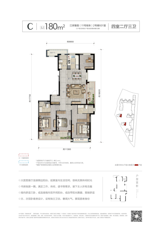 建筑,不止是家的“容器”,更是久经淬炼后,一个心灵的栖息地方,于空间上悉心考量,于细节处精雕细琢,让欢乐的时光容纳美好的舒居体验。唯有居于此间的人,方懂得其中的真义,江岸臻园︱天宸,建筑面积约180-197㎡平层大宅,通过合理的空间布局,为每一位家庭成员打造自己独立的生活空间,诠释人们对奢适生活的所有想象。