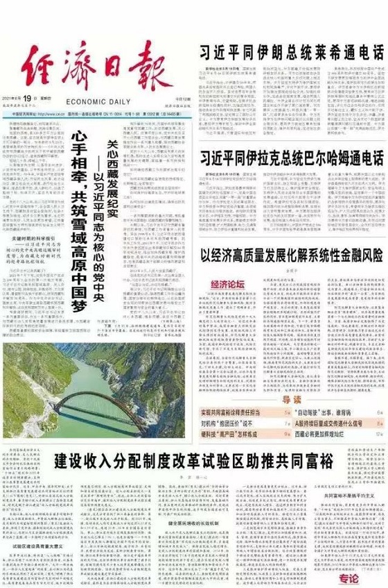 隔天,《经济日报》在头版刊发浙江大学文科资深教授、浙江大学共享与发展研究院院长李实与浙江大学共享与发展研究院研究员杨一心合作文章《建设收入分配制度改革试验区助推共同富裕》,文中对如何通过“三次分配”实现共同富裕进行了系统论述。