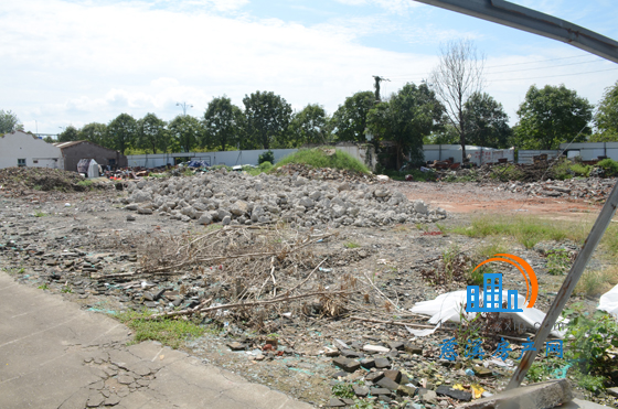 目前地块周围围挡已设立,地块内部还有不少的废弃建筑物、建筑垃圾、树木、杂草等。后期还需要对土地进行清理平整,才能进行施工。