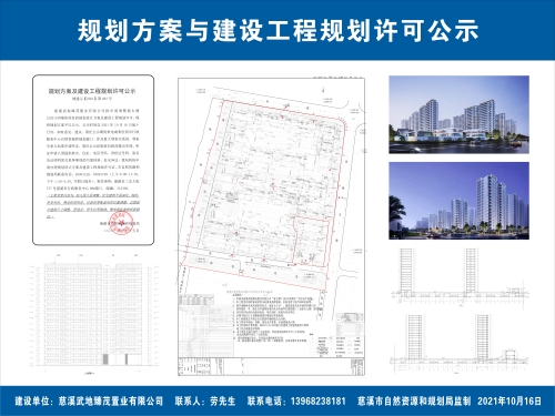 慈溪武地臻茂置业有限公司拟申请调整慈古塘I202101#地块项目的规划设计方案及建设工程规划许可。现将规划方案予以公示。公示时间自2021年10月16日起十日内,如有意见、建议,请在公示期间来电或来信到市行政服务中心自然资源和规划窗口。涉及重大利害关系的,利害关系人如需申请听证,请在公示结束前向我局提出申请,听证申请人须提供姓名、住址、电话号码、身份证号码、签名及证明利害关系等事项的书面材料。若无异议,我局将依申请办理规划设计方案及建设工程规划许可证。市自然资源和规划局联系电话:63961126、63961748(上午8:00-11:30,下午1:30-4:30,节假日除外),来信请寄:慈溪市三北大街777号慈溪市行政服务中心98#窗口,邮编:315300。