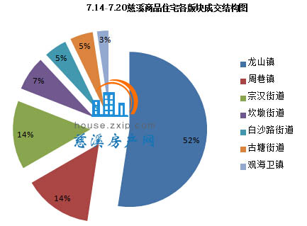 慈溪商品住宅各版块成交情况中,城区版块成交13套,占总成交的30.95%,成交均价10033.5元/㎡。龙山镇备案22套,占52%;周巷镇与宗汉街道各备案6套,各占14%。