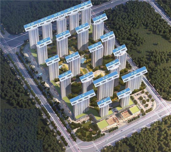 世纪金源打造建筑面积约104-191㎡宽奢高层、建面约222-235㎡叠墅、商墅、酒店、商铺等多元业态的城市复合体。