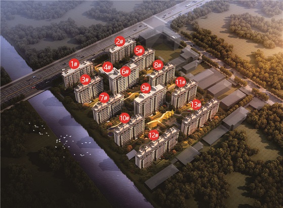 项目总建面约4.7万方,沿水岸匠筑11幢洋房著品,建面约82-128㎡,位于胜山镇。