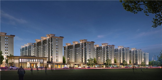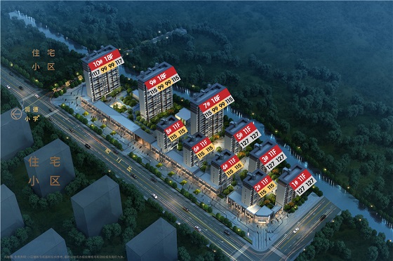 项目位于新城大道与规划明州路交汇处。总占地约66亩,总建筑面积约18.08万方,绿地率30%,容积率3.0,项目有商业 1.3 万方、住宅 14 栋 805 套。