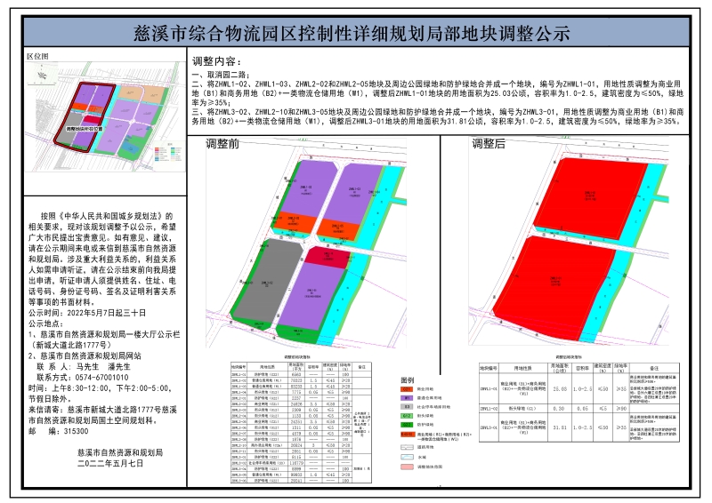慈溪市综合物流园区控制性详细规划局部地块调整公示