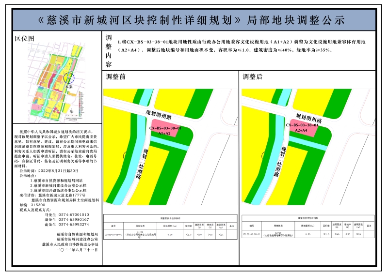 《慈溪市新城河区块控制性详细规划》CX-BS-03-38-01地块调整公示