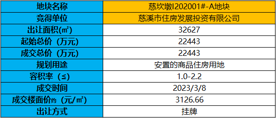 慈坎墩I202001#-A地块使用权拍卖出让结果