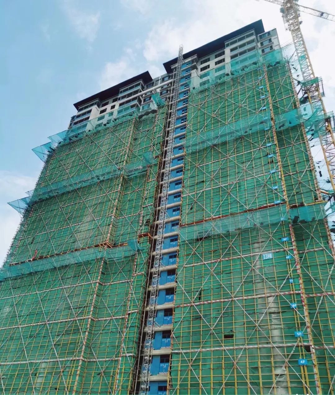18#楼主体已封顶,砌体施工完成,二次结构施工完成,门窗安装已到后期,外墙粉刷施工完成,外架拆除完成。