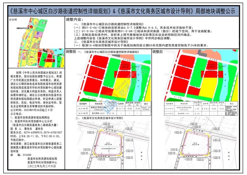 《慈溪市中心城区白沙路街道控制性详细规划》和《慈溪市文化商务区城市设计导则》局部地块调整公示