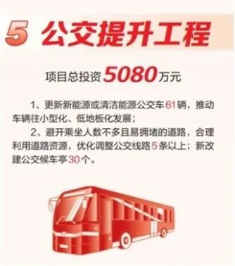 2、避开乘坐人数不多且易拥堵的道路,合理利用道路资源,优化调整公交线路5条以上;新改建公交候车亭30个。