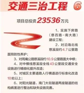 4、对中横线慈溪段全线43公里段交通安全设施进行精细化提升改造;